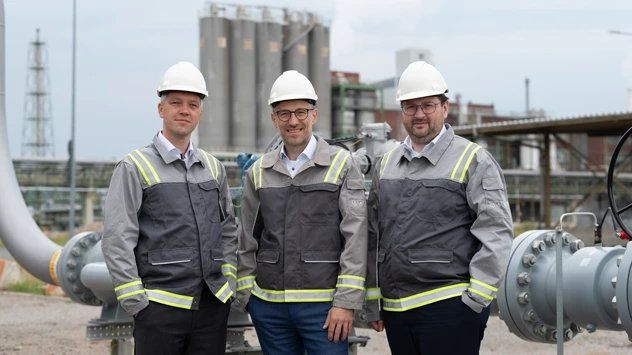 Seit dem 1. Januar 2026 wird der Chemiepark Marl von der 100-prozentigen Evonik-Tochter SYNEQT betrieben - mit den drei Geschäftsführern Andreas Orwat, Thomas Basten (Sprecher) und Daniel Brünink (von links) an der Spitze.